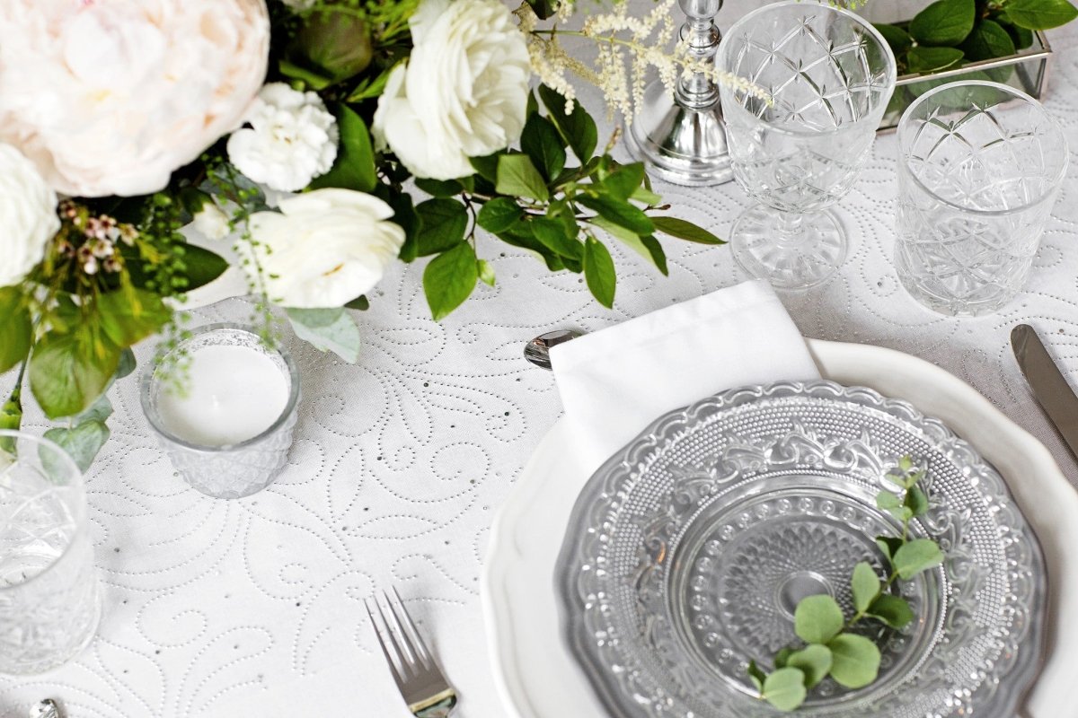 Witte Organza Stof Parels 48cm 9m