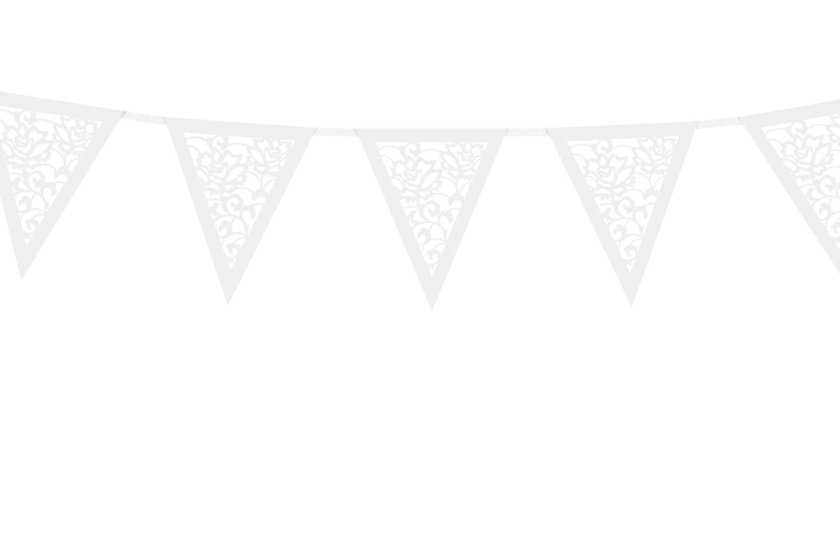 Inhoud: Papier guirlande, parelwit, afmetingen 19,5 cm x 3 meter.
