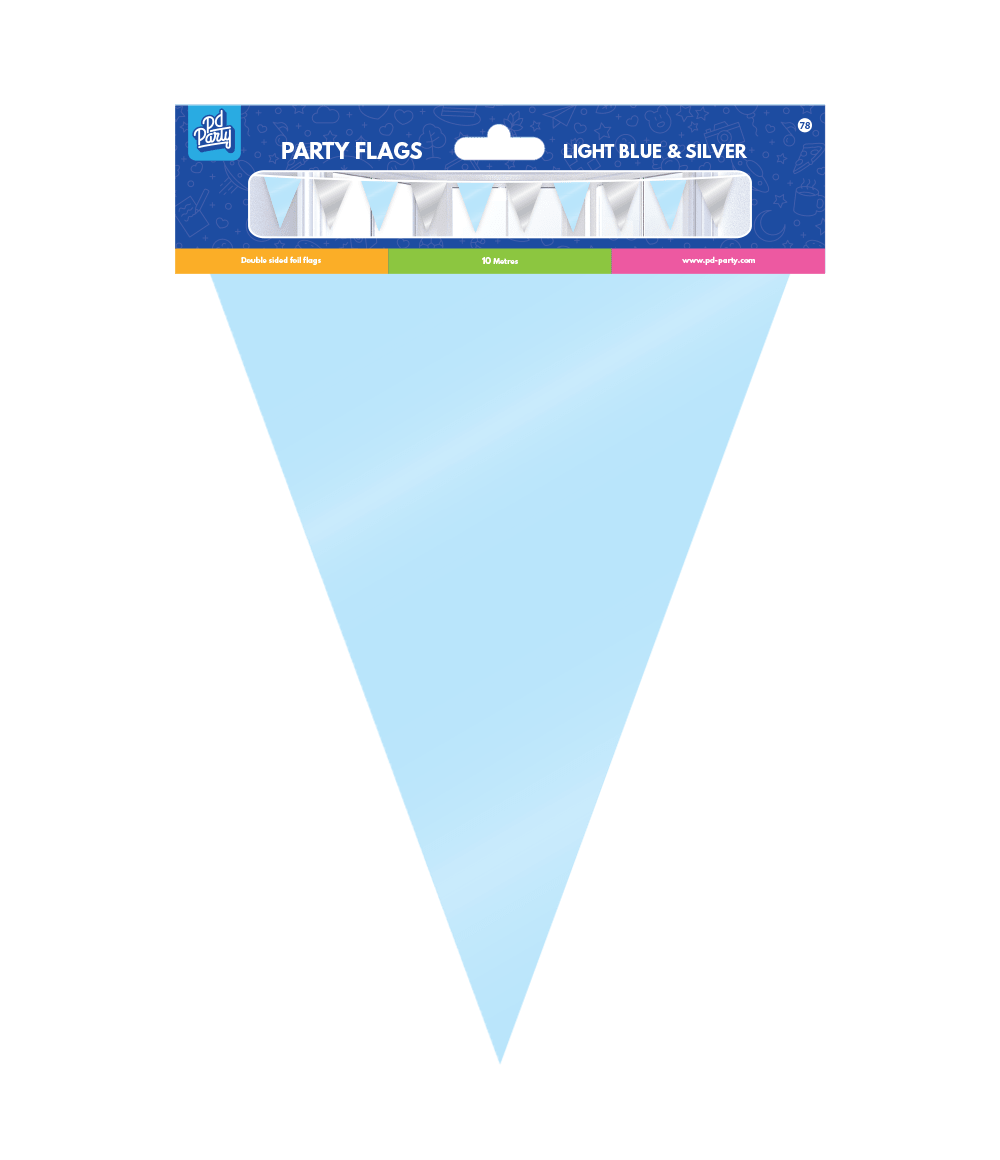 Een feestje kan niet zonder vlaggetjes en als je deze party flags foil koopt dan haal je direct een vlaggenlijn met een unieke kleurencombinatie in huis! De vlaggetjes zijn gemaakt van folie en de vlaggenlijn is 10 meter lang.