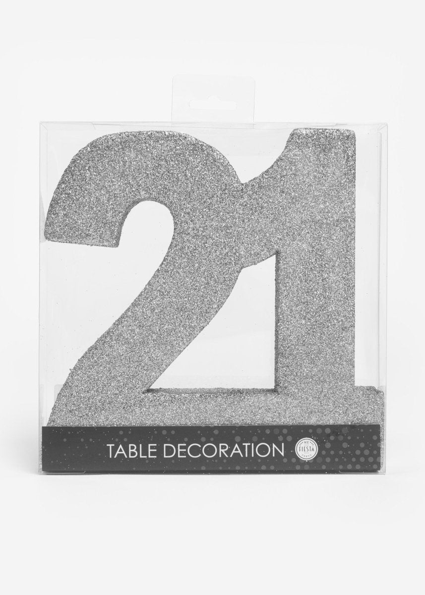 Zilver Tafeldecoratie Cijfer 21 Glitter 20,5cm