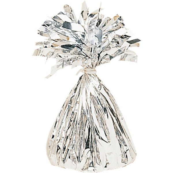 De kegelvormige gewichten zijn verpakt in glanzend goudfolie en afgewerkt met een pluim van folie slierten. In de pluim is een verborgen lus verwerkt, waardoor het eenvoudig is om de ballonnen veilig vast te maken. Bevestig gewoon het lint of touw aan het gewicht en je bent klaar!