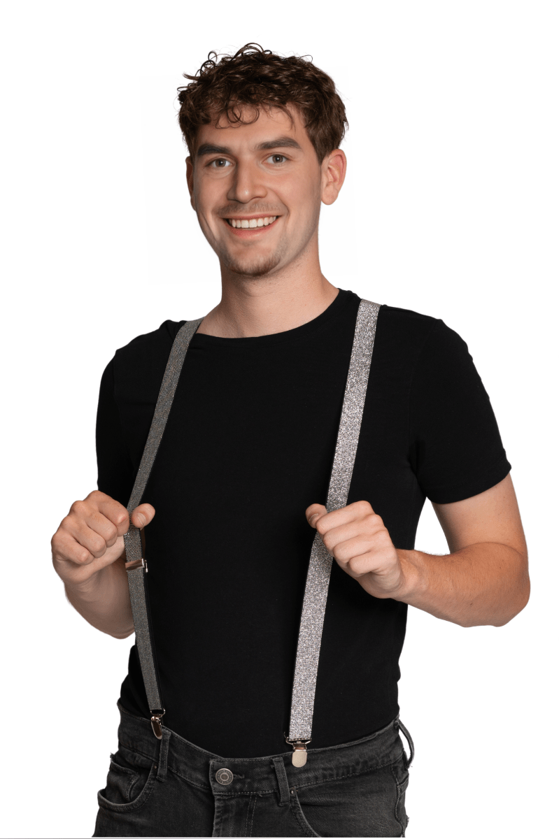 Voeg een glanzende touch toe aan je outfit met deze zilverkleurige bretels. Perfect voor feestjes, thema-avonden of carnaval.