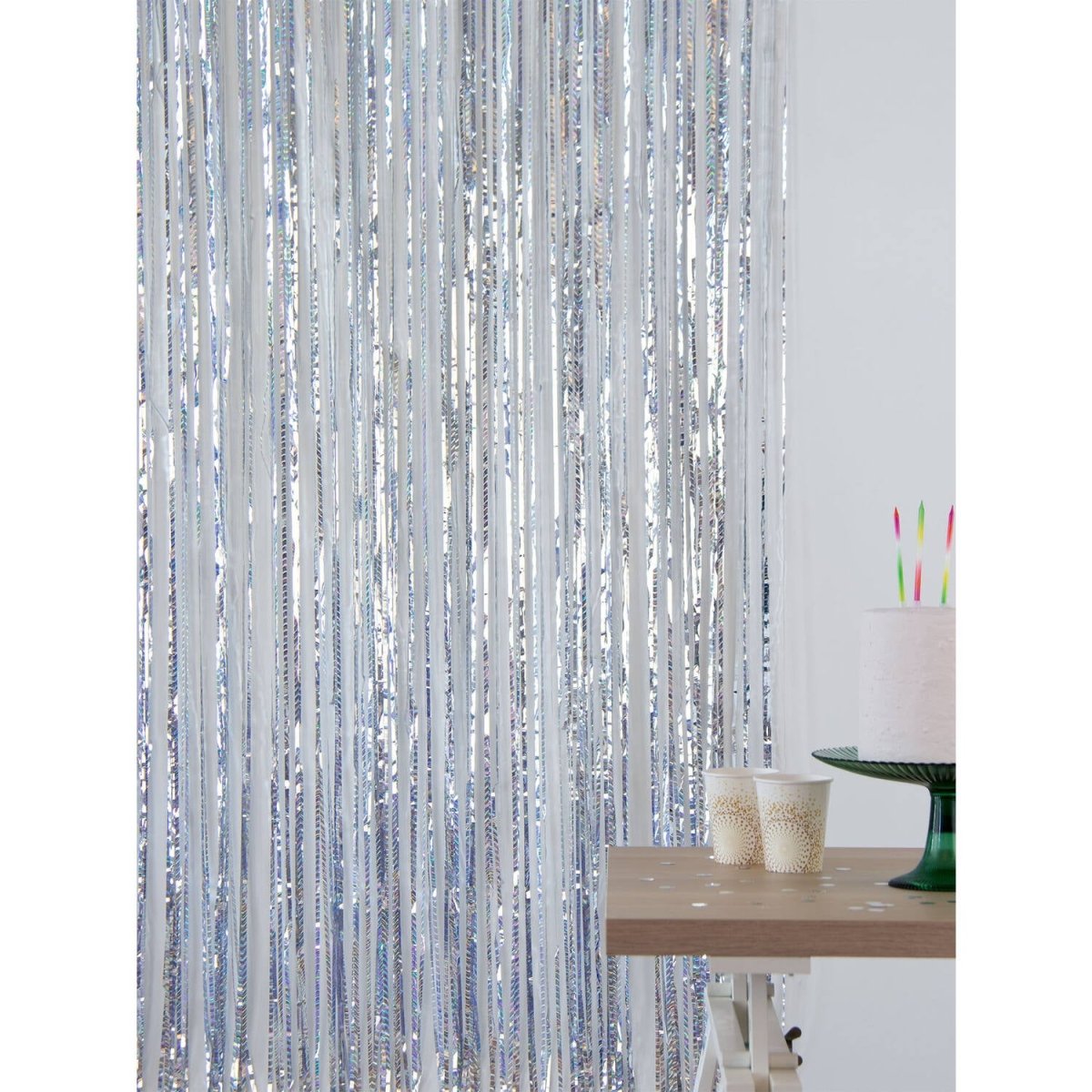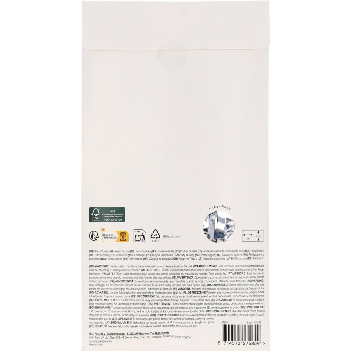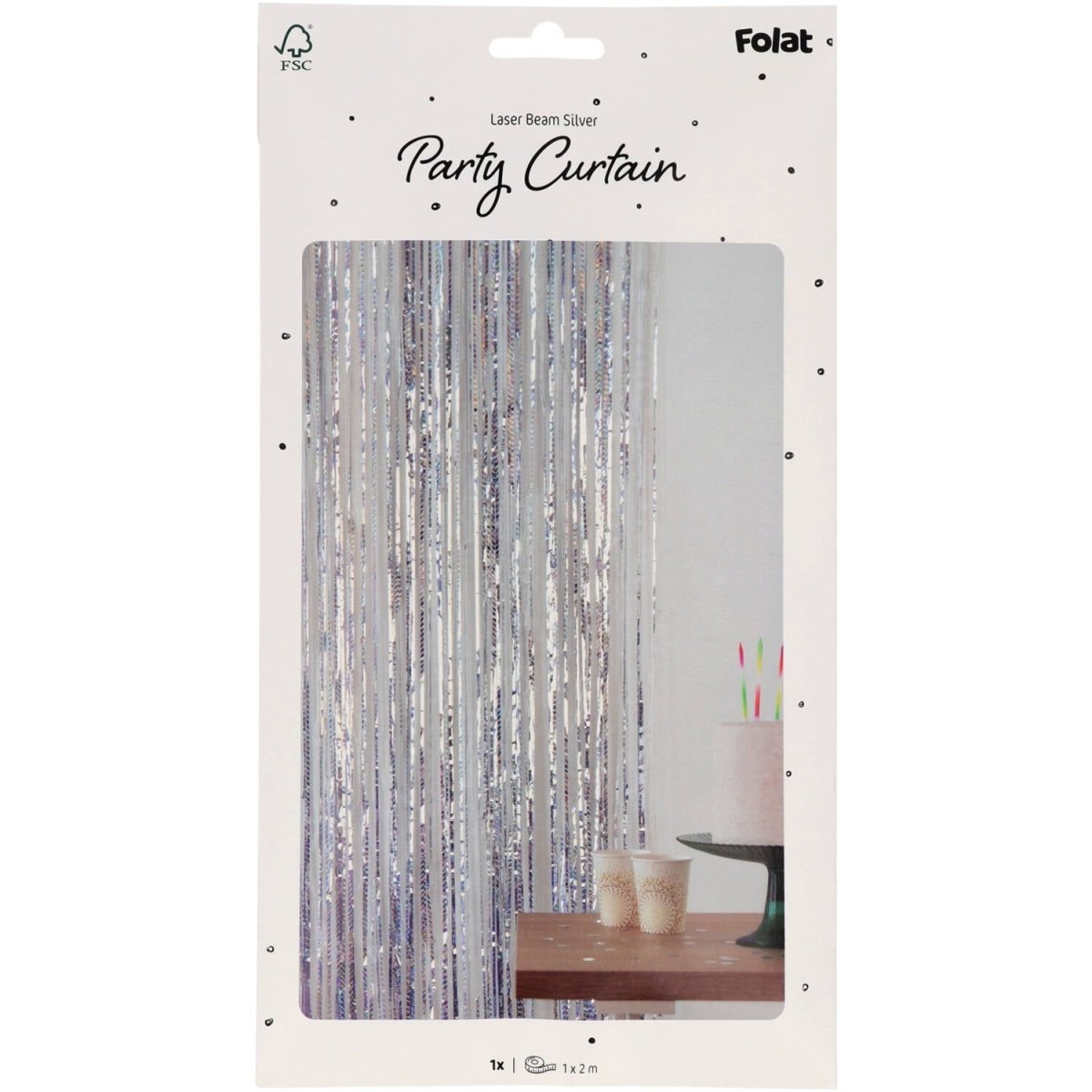 Een kosmische binnenkomst. Feestgordijn - Laser Beam Zilver - 1 x 2 m. Inhoud: 1 feestgordijn. Bijvoorbeeld te gebruiken tijdens de volgende feestgelegenheid/feestgelegenheden: Verjaardag, Themafeest. Een glinsterend zilveren feestgordijn met een soort laser-beam-effect. Leuk als deurgordijn, maar ook heel geschikt als backdrop voor onvergetelijke foto's. Dankzij de handige plakrand is dit feestgordijn gemakkelijk op te hangen. Dit artikel is gemaakt van folie.