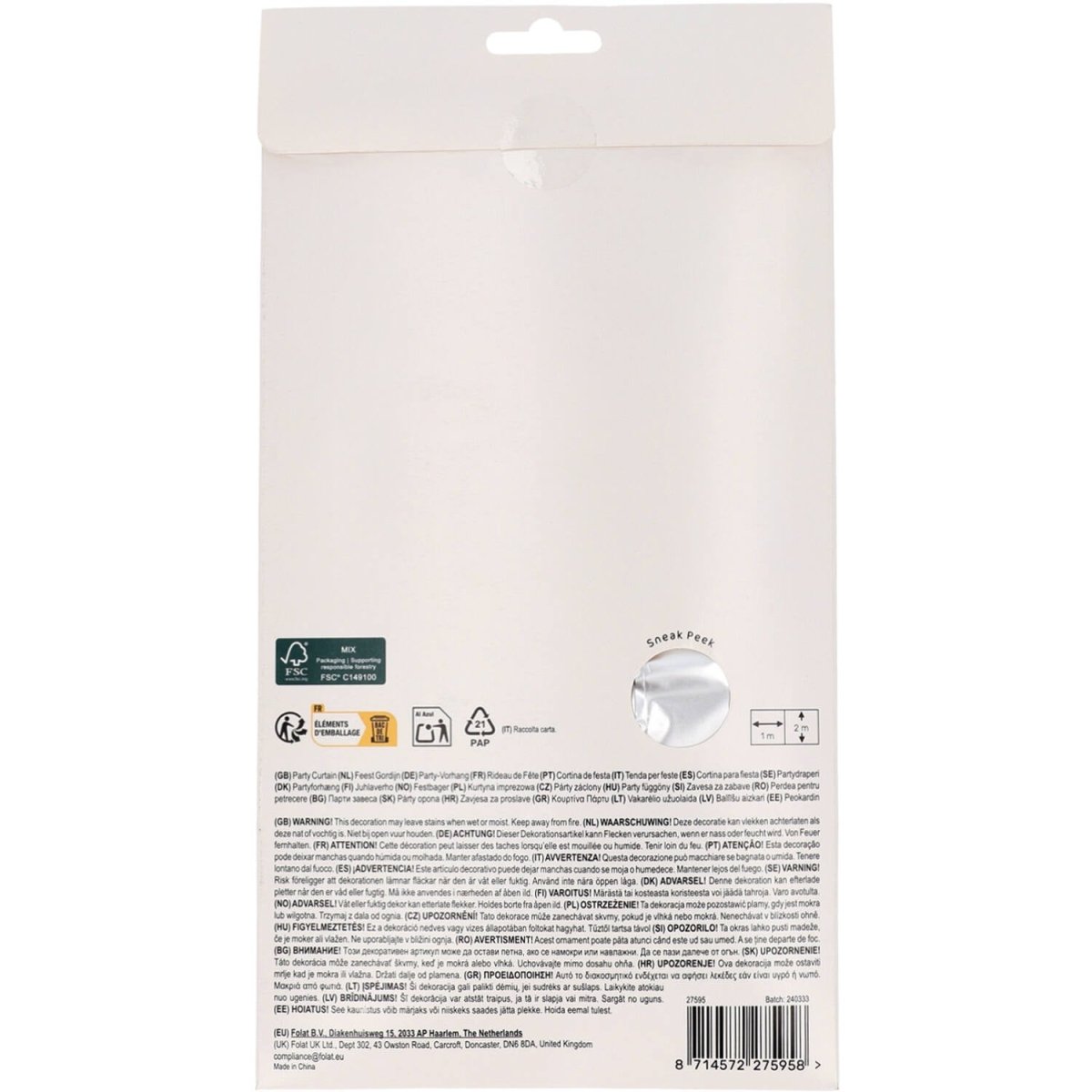 Voor een glansrijk feest. Feestgordijn - Matt Zilver - 1 x 2 m. Inhoud: 1 feestgordijn. Bijvoorbeeld te gebruiken tijdens de volgende feestgelegenheid/feestgelegenheden: Verjaardag, Themafeest. Een elegant feestgordijn met brede zilveren stroken van 2,5 cm breed. Leuk als deurgordijn, maar ook heel geschikt als backdrop voor mooie foto's. Dankzij de handige plakrand is dit feestgordijn gemakkelijk op te hangen. Dit artikel is gemaakt van folie.