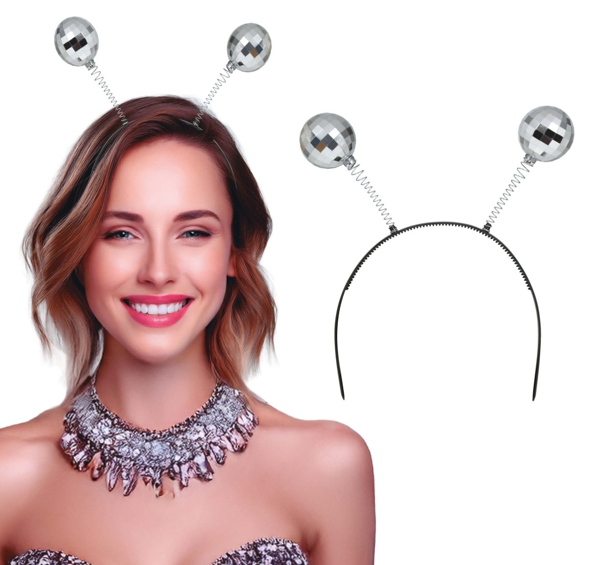 Zilveren Haarband Discobalen
