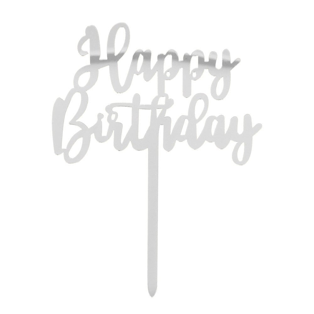 Zilveren Happy Birthday Taarttopper 15,5cm