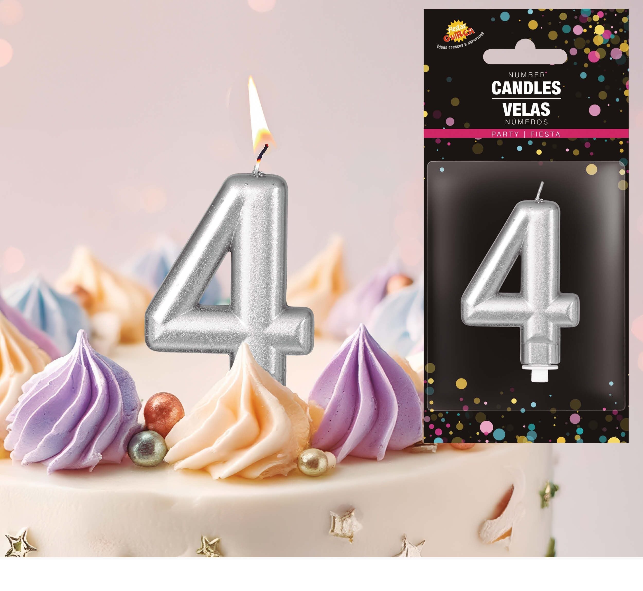 Zilveren Kaars 4 Jaar Metallic 8cm