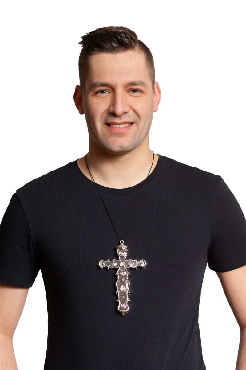 De Zilveren Kruis ketting is een stijlvol en opvallend accessoire dat perfect past bij uiteenlopende verkleed- en thema-outfits. Ideaal om een outfit extra uitstraling te geven tijdens carnaval, themafeesten en andere feestelijke gelegenheden.