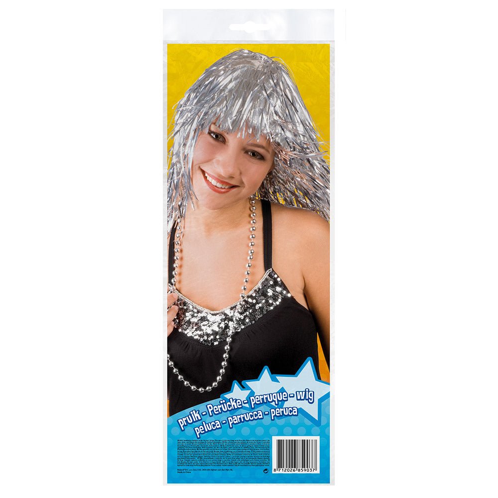 Verpakkingsinhoud: Zilveren Pruik Folie