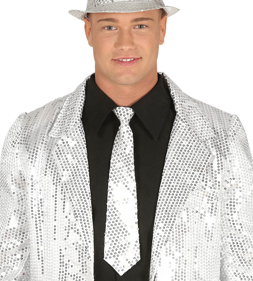 Zilveren Stropdas Glitter Paillet