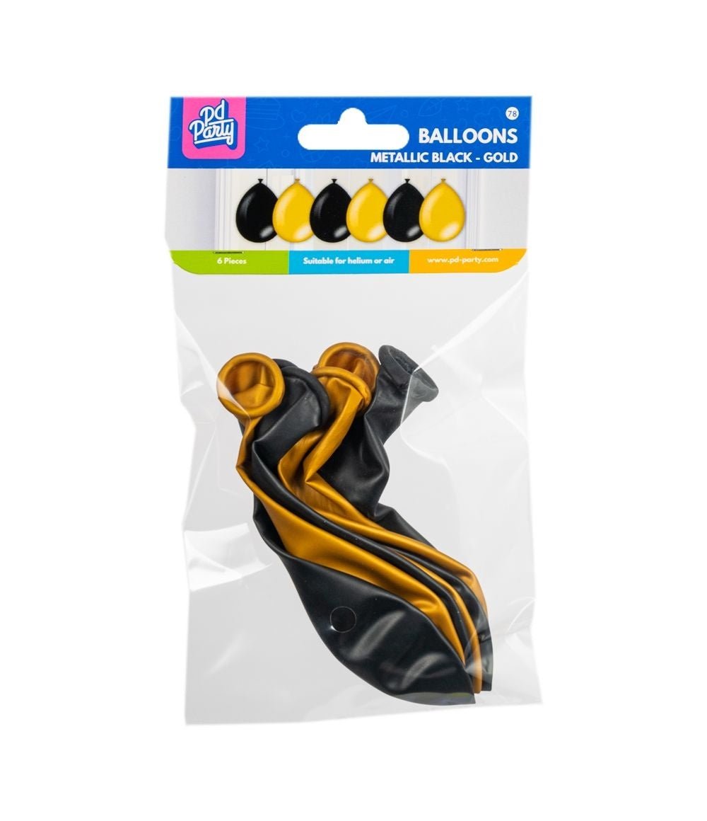 Zwart Gouden Ballonnen Metallic 30cm 6st