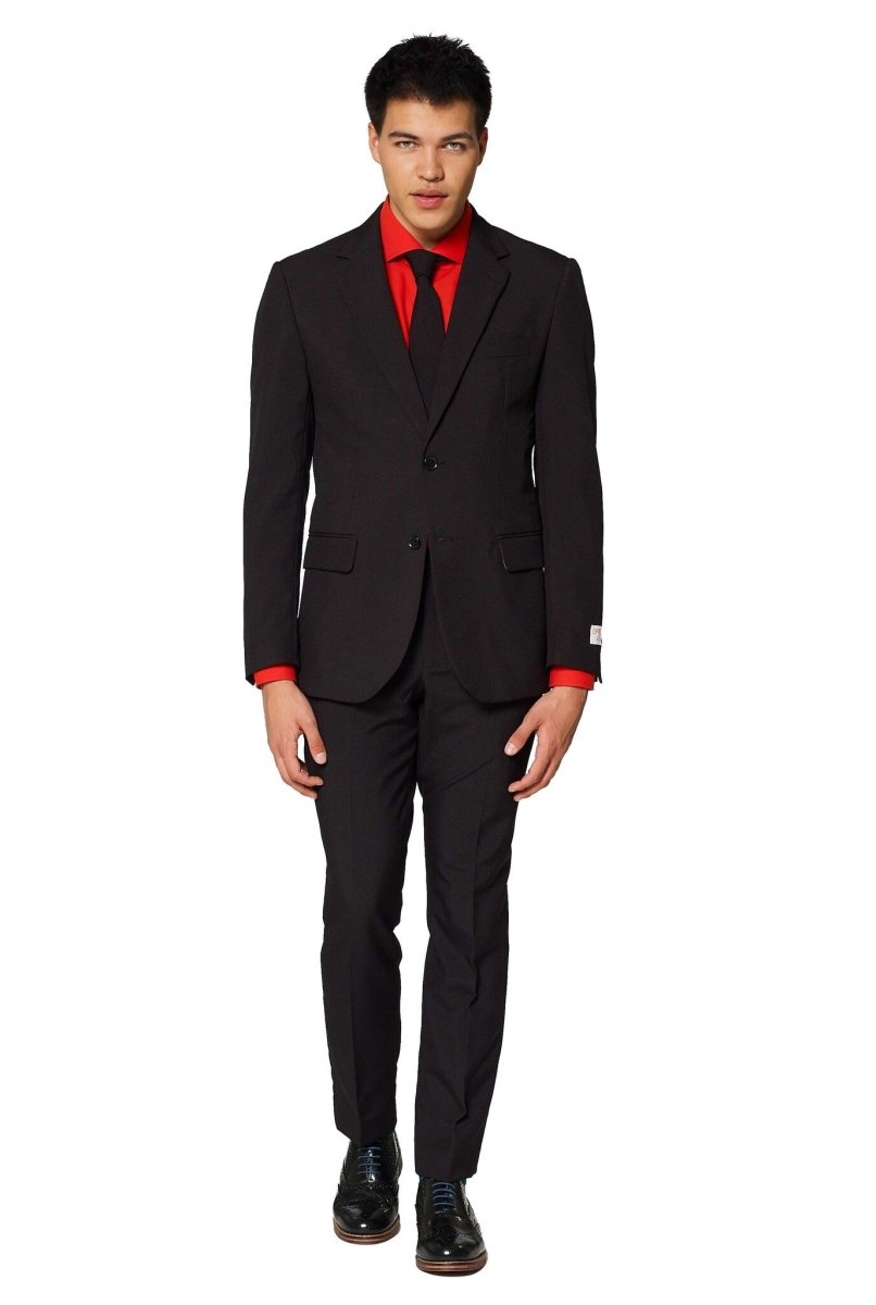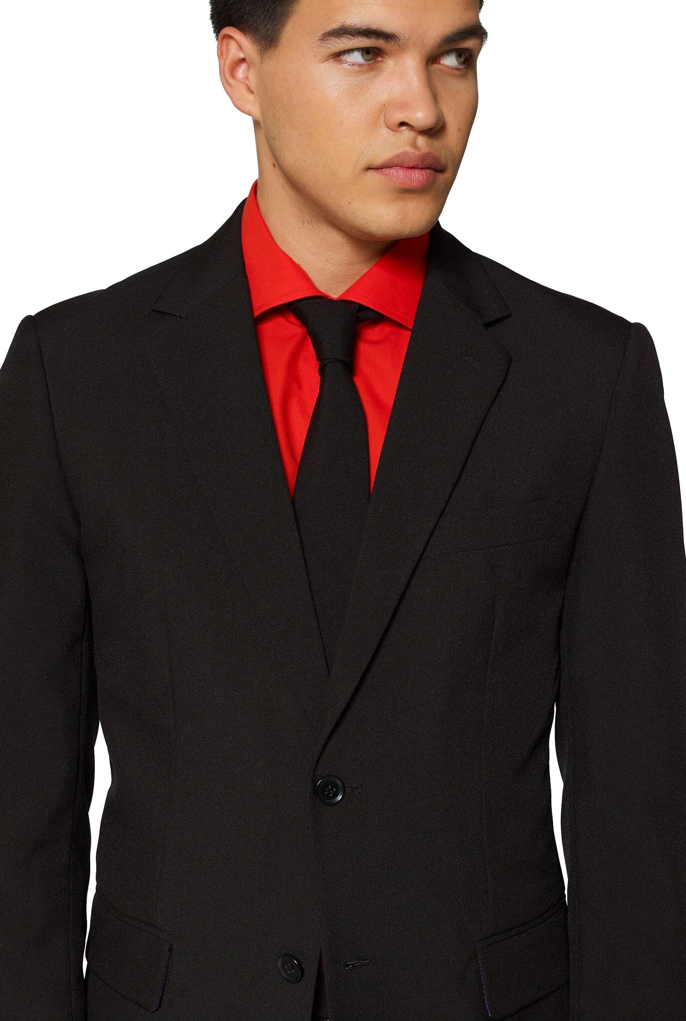Alsof je zonder training de zwarte band in fashion én feesten hebt gehaald: in dit inktzwarte harnas van OppoSuits voel je je onoverwinnelijk. Dus maak van de nacht je schutkleur, sluip door de schaduwen en doe je ding in het donker.