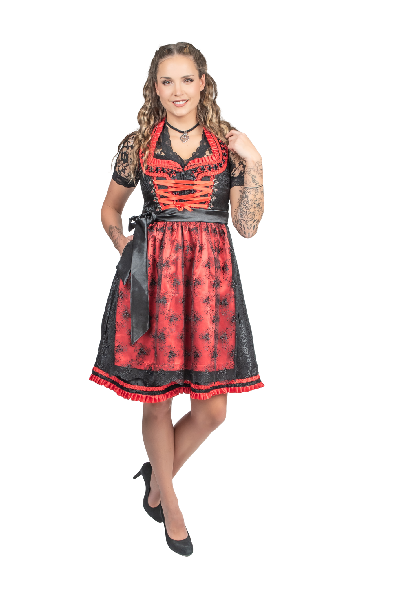 Zwart Rode Dirndl Jurk Oktoberfest Dames 2 Delig