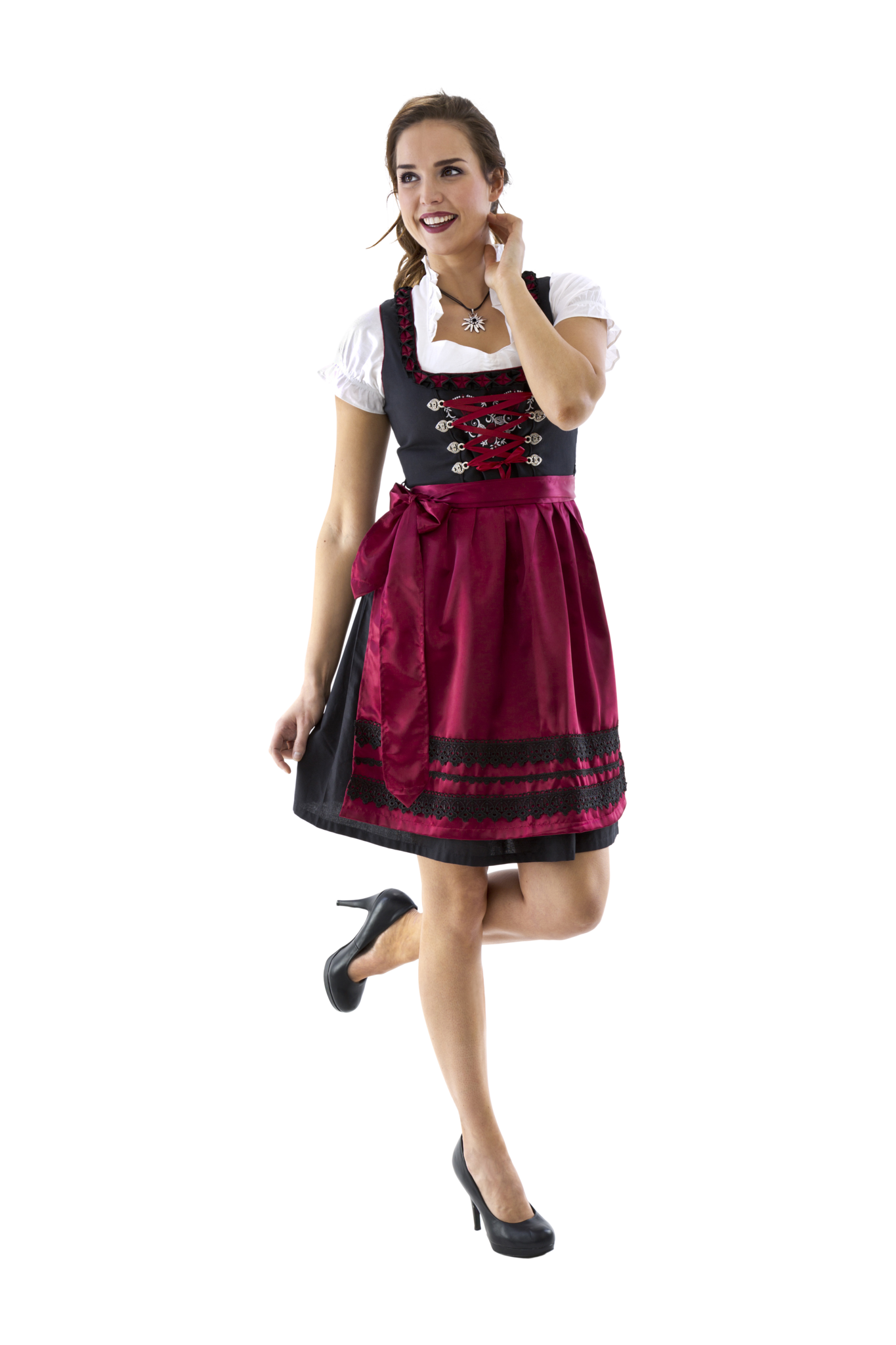 Zwart Rode Dirndl Jurk Oktoberfest Dames Bordeaux