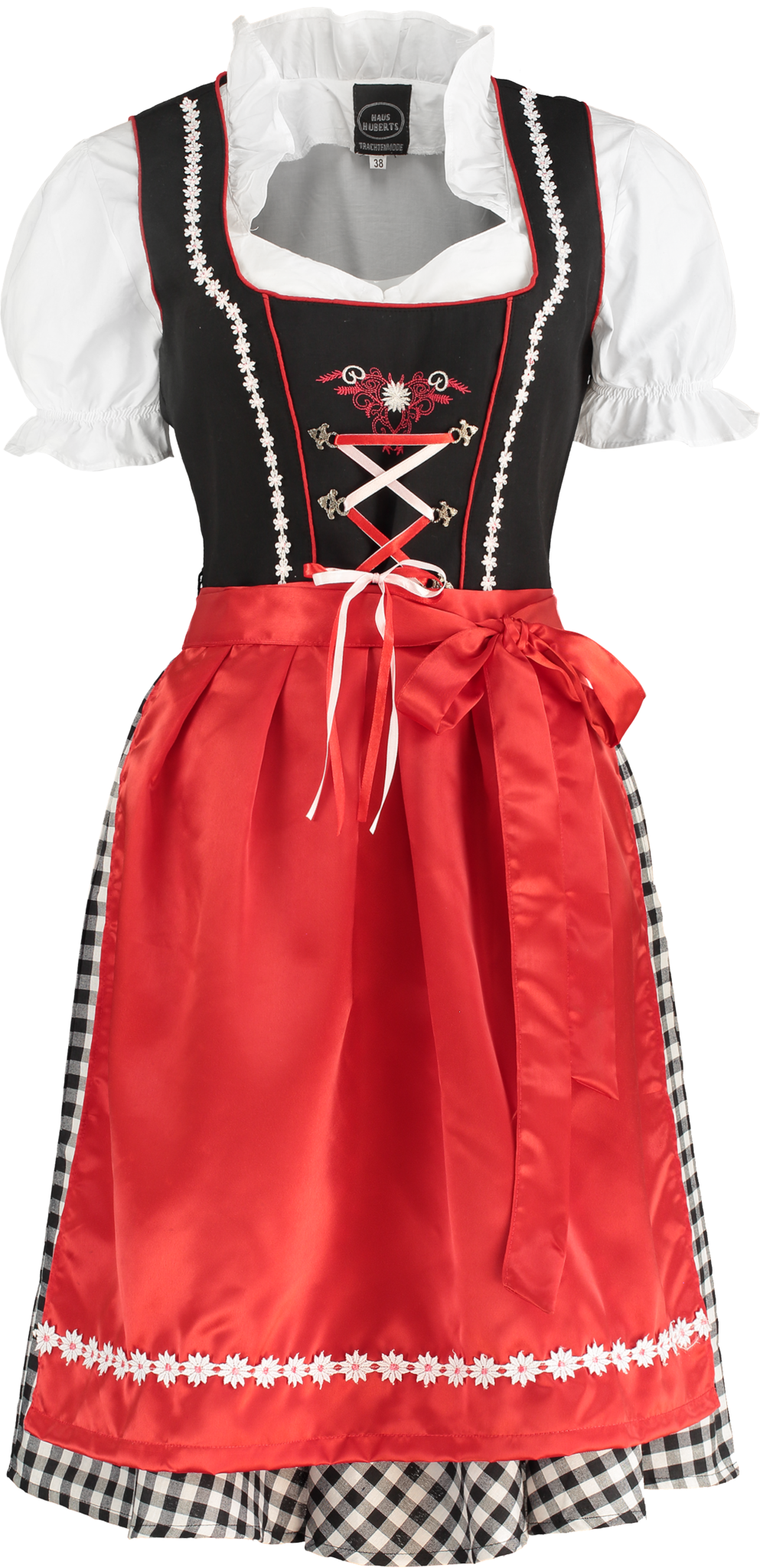 dirndl heeft lusjes aan de zijkant, een knoop voor het schort.
