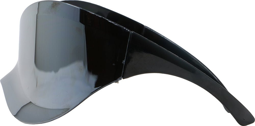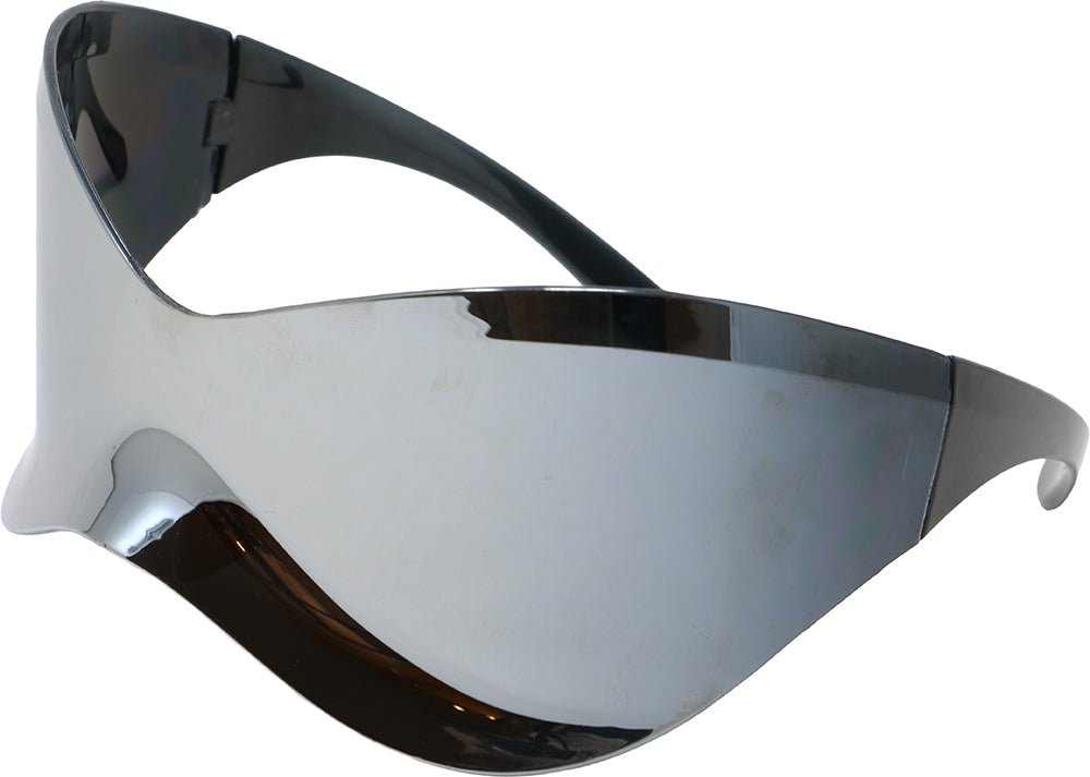 Geef je look een moderne en gedurfde uitstraling met deze futuristische spiegelzonnebril. Het zwarte montuur met zilverkleurig spiegeleffect maakt deze bril ideaal voor feesten, festivals of een opvallende streetstyle.