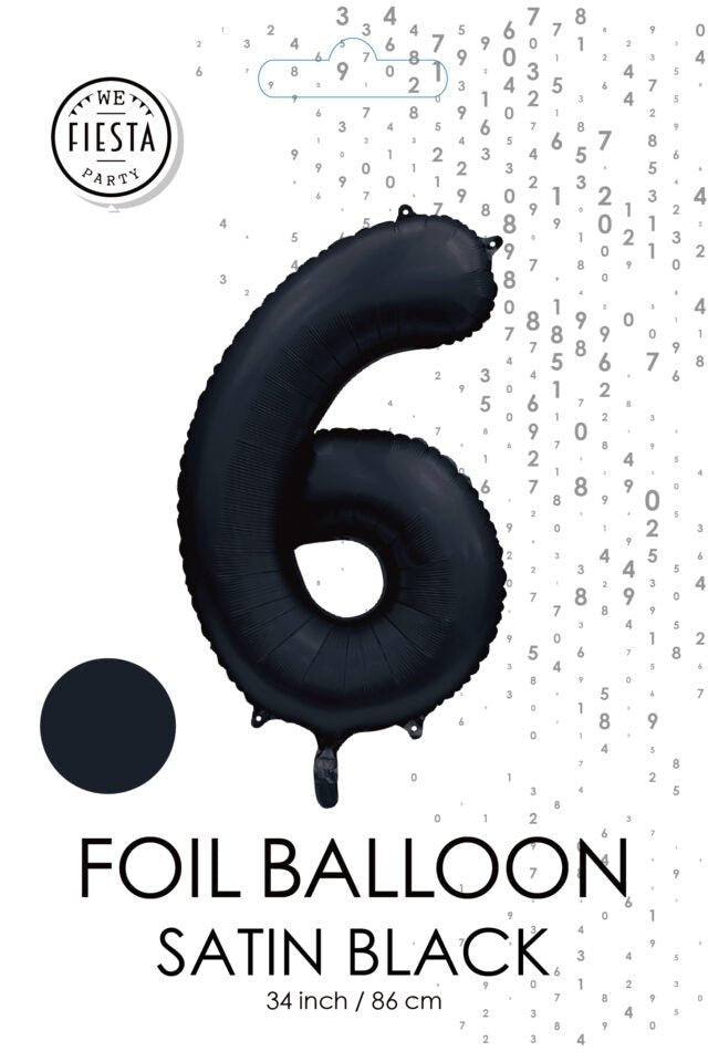 Zwarte Cijfer Ballon 6 Jaar Glans 86cm