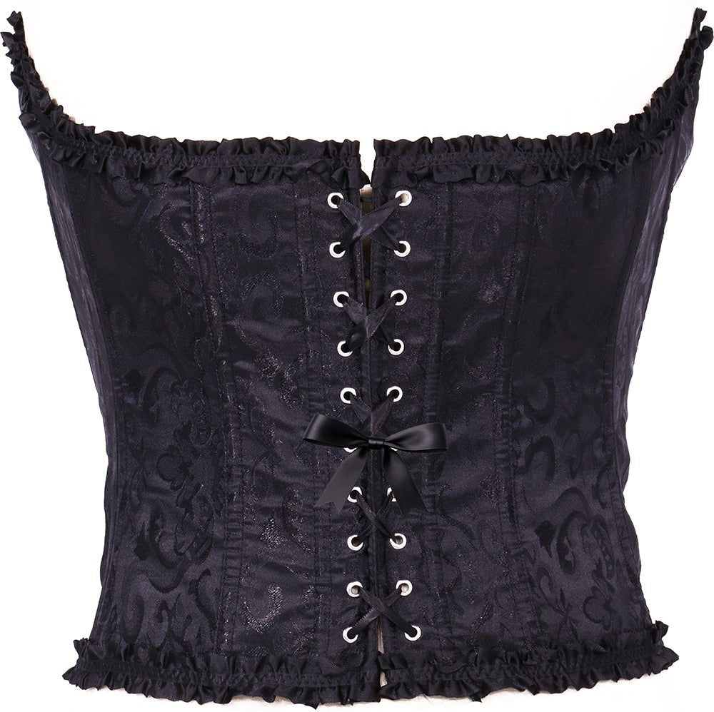 Dit zwarte corset is een elegant en veelzijdig accessoire dat elke outfit een verfijnde, vrouwelijke look geeft. Dankzij het tijdloze ontwerp en het comfortabele materiaal is het geschikt voor zowel verkleedkleding als modieuze styling.