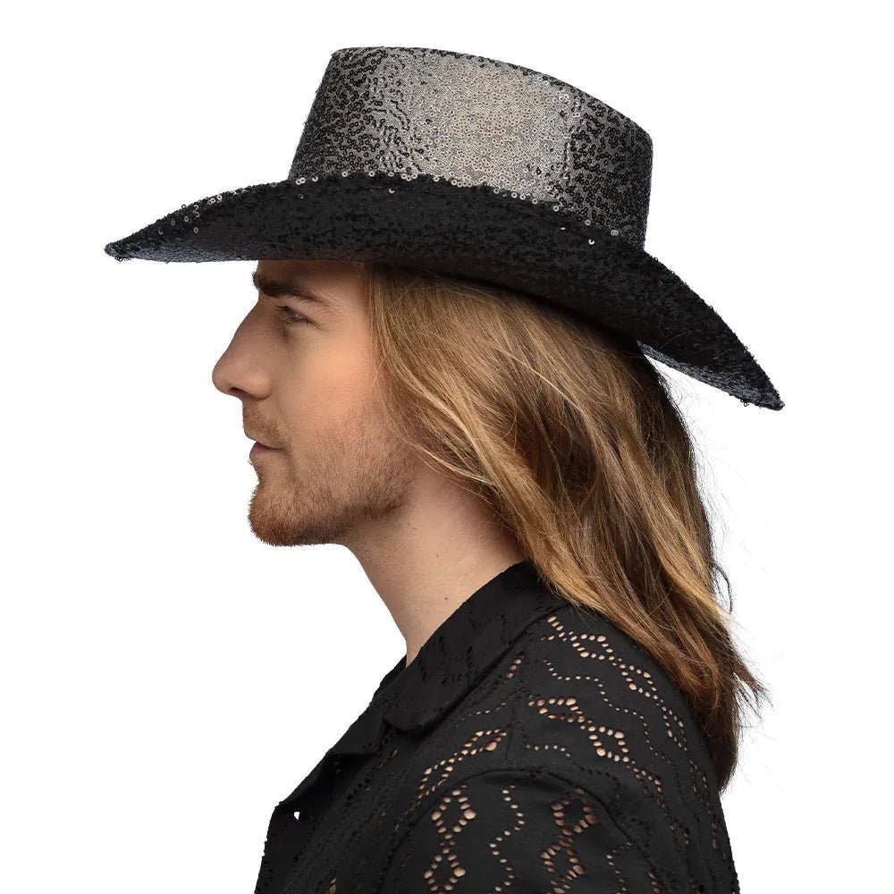 Deze zwarte cowboyhoed met sequins is niet alleen heel leuk als toevoeging op een Western kostuum voor carnaval, het is ook te gek als finishing touch voor naar een hip festival. Deze cowboyhoed heeft een glamoureuze en stoere uitstraling waardoor hij een outfit helemaal compleet maakt!