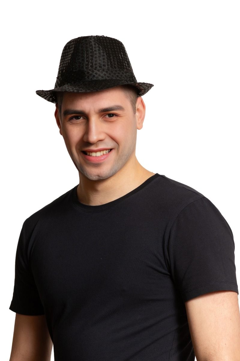 Zwarte Hoed Pailletten Met Licht