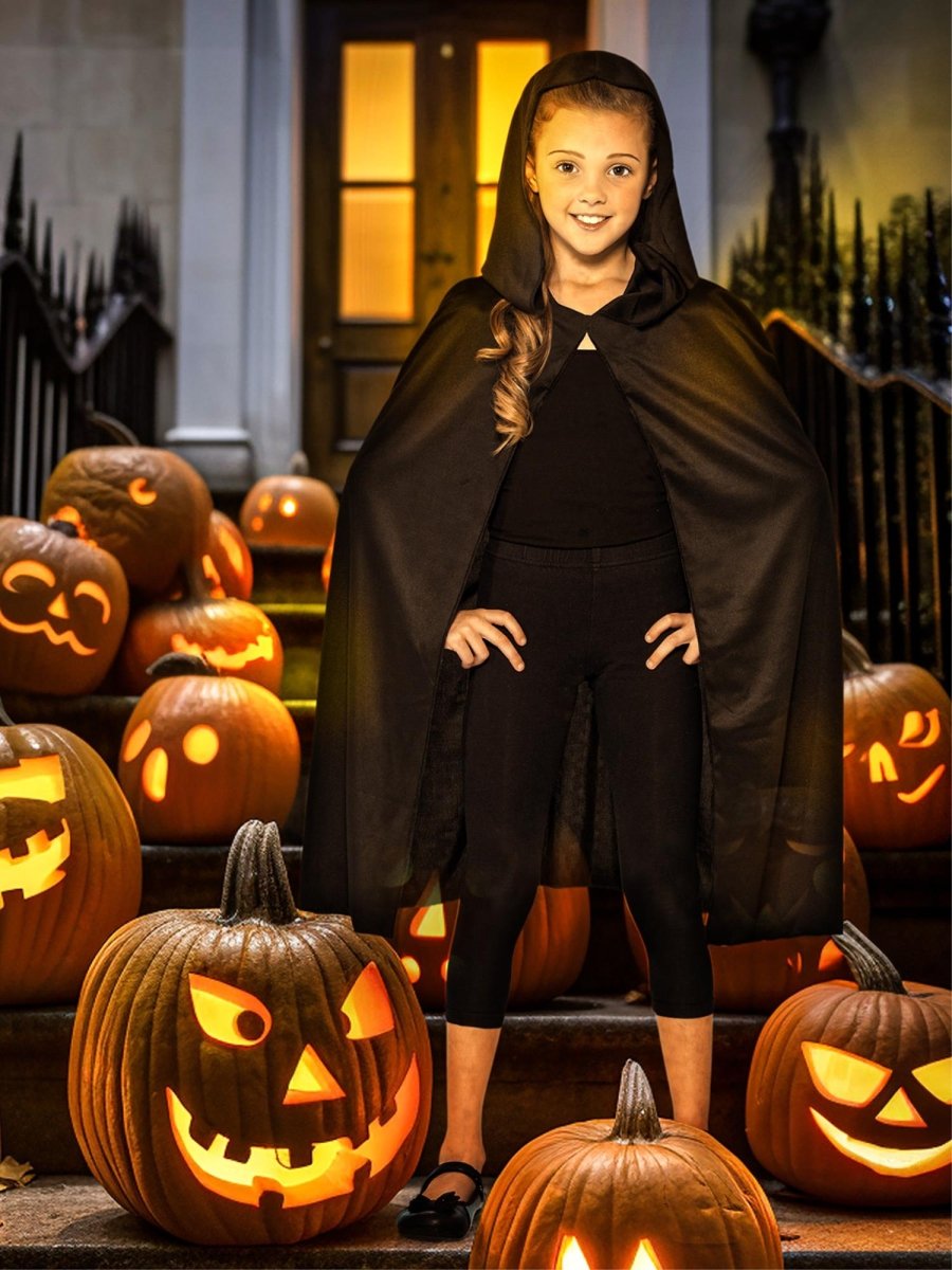 Deze lange zwarte cape met capuchon is een veelzijdig accessoire dat perfect past bij diverse kostuums, zoals vampier-, tovenaar- of fantasy-outfits. Het comfortabele polyester materiaal maakt de cape prettig om te dragen tijdens elk feest of evenement.
