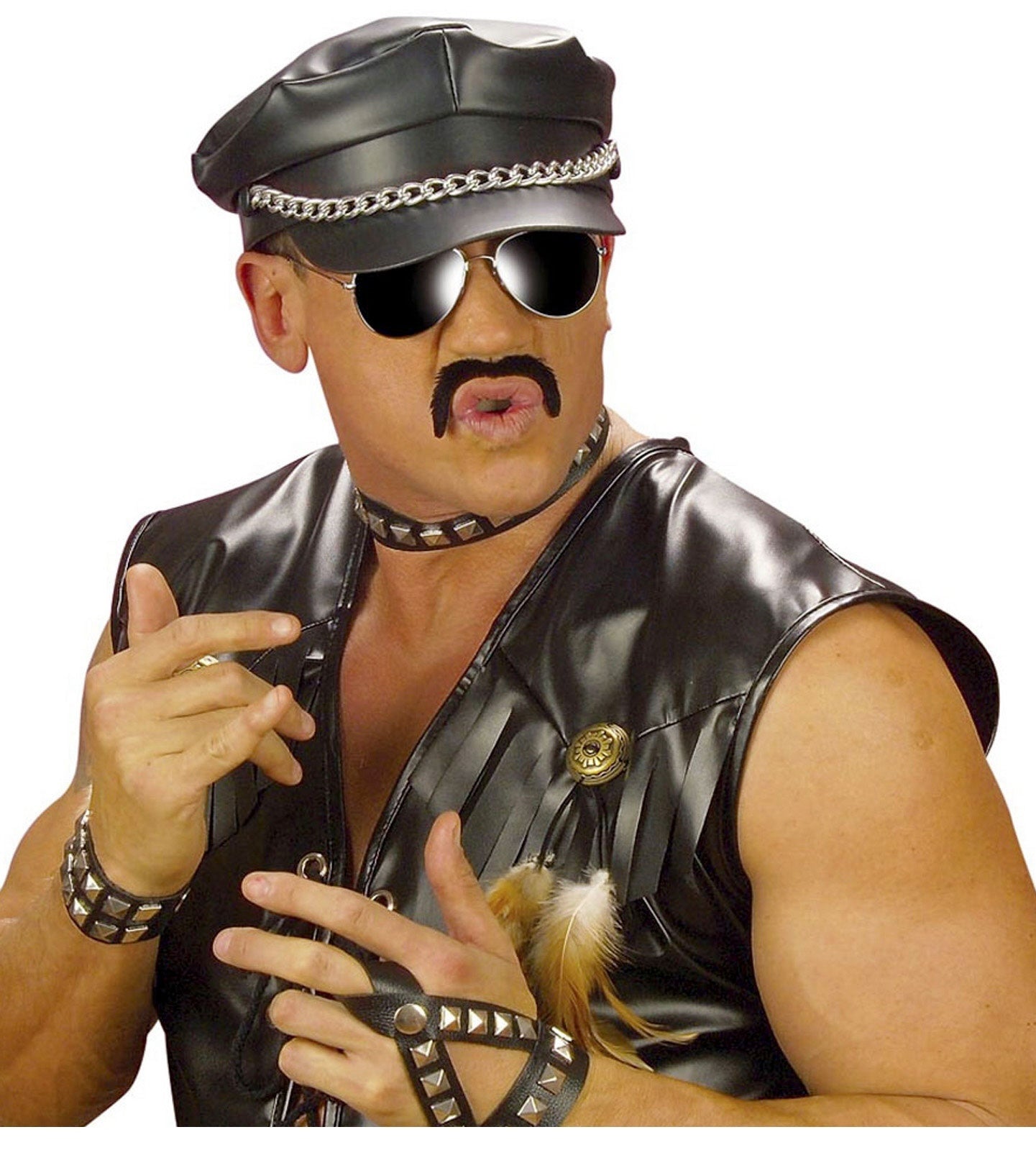 Omschrijving: zwarte snorlijm -1 willekeurige snor - Materiaal: 100% polyester - Wasinstructies: niet wassen, bleken niet toegestaan, niet in de droger drogen, niet strijken, niet chemisch reinigen - Geschikt voor: volwassene
