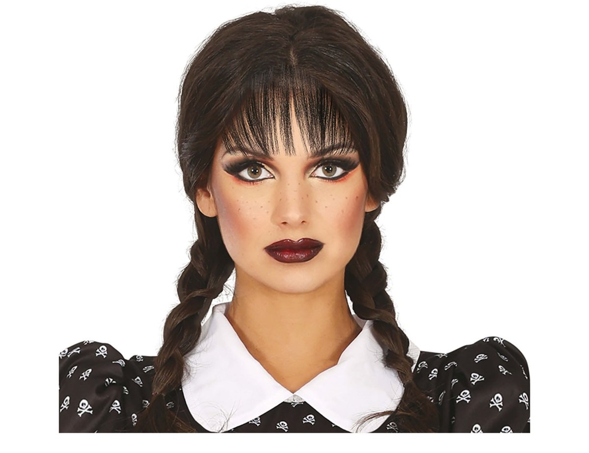 Zwarte Pruik met Vlechten Pony