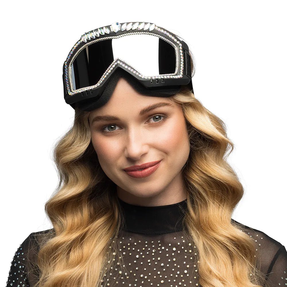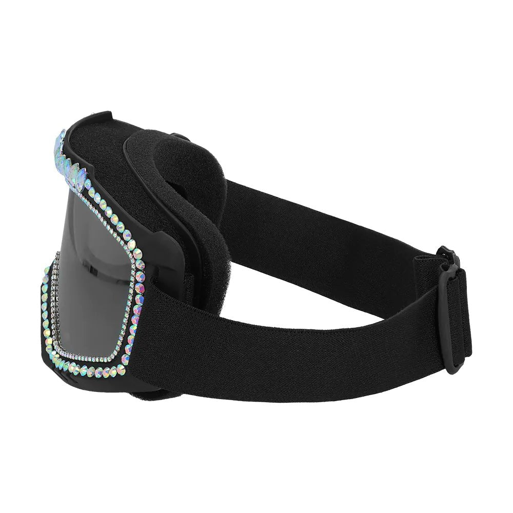 Deze unieke zwarte party skibril is het perfecte accessoire voor alle party animals die graag in de spotlight staan. Het sporty design in combinatie met de glimmende steentjes maken deze mooie feestbril een must-have voor een festival of party outfit.