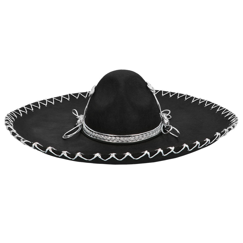 De Sombrero Guillermo is een elegante zwarte sombrero met verfijnde zilveren details en een klassieke Mexicaanse uitstraling. Een opvallend accessoire dat direct de juiste sfeer neerzet, of je nu gaat voor een authentieke mariachi-look of een feestelijke carnavalsoutfit.