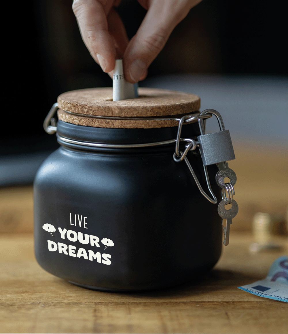 Zwarte Spaarpot Live Your Dreams 12,5cm