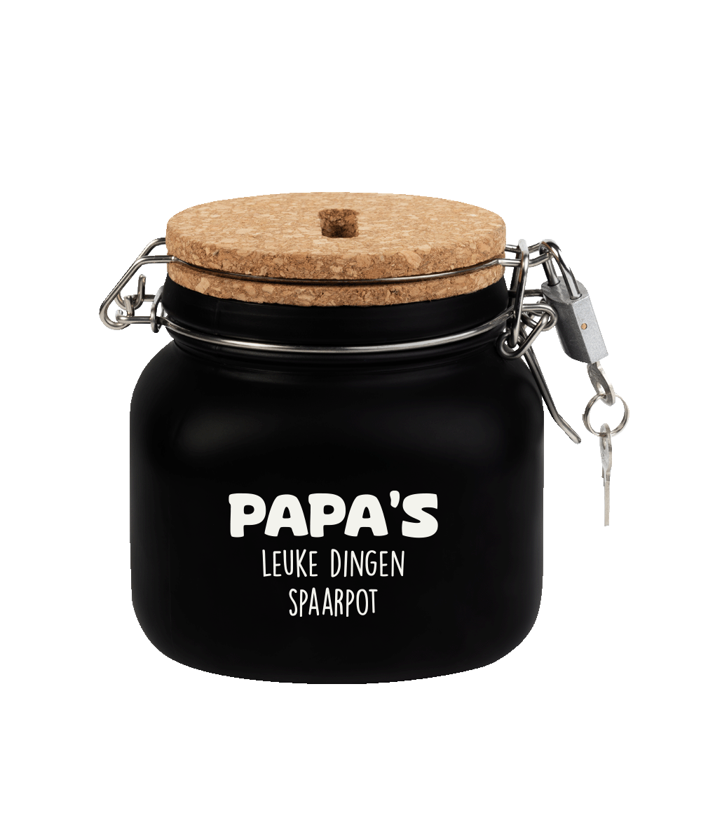 De luxe spaarpotten van Paper Dreams zijn perfecte cadeaus voor bijvoorbeeld Vaderdag, Moederdag of bijvoorbeeld een verjaardag. Deze luxe spaarpot - papa is gemaakt van glas en is zwart van kleur.