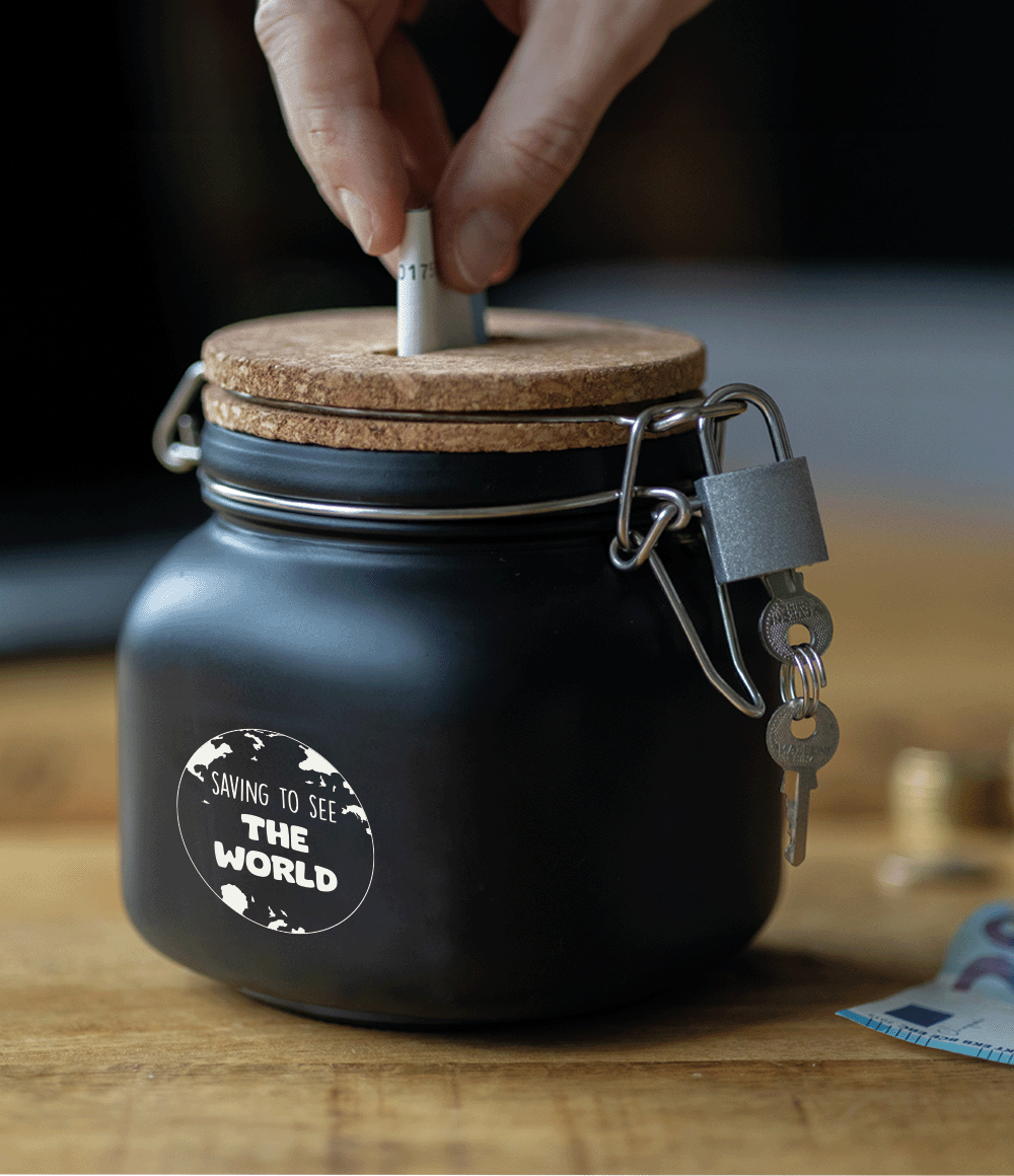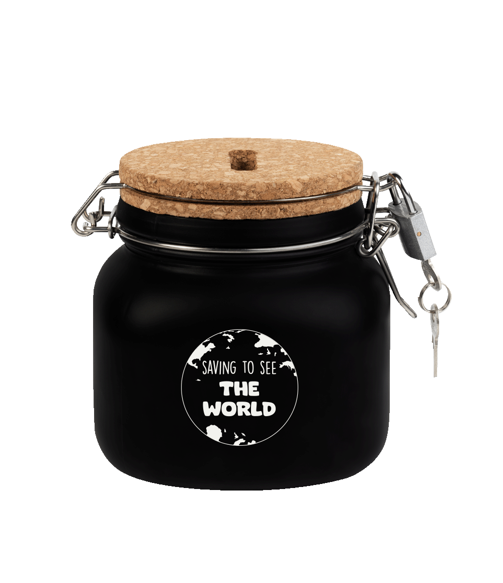 Zwarte Spaarpot Saving To See The World 12,5cm
