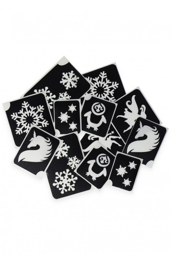 De set bevat 12 glittertattoo sjablonen. Gebruik de speciale huidlijm en fijne glitters om schitterende glittertattoos te creëren.