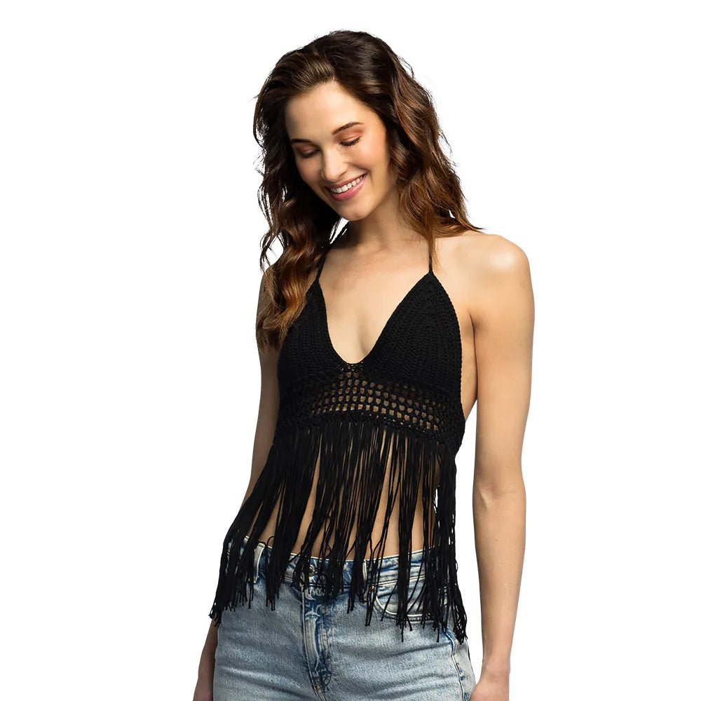 Zwarte Top Dames Franjes