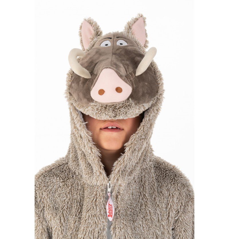 Wild Zwijn Kostuum uit Asterix en Obelix de Galliër, het lievelingseten van Obelix, inclusief het volledige pluchen pak met everzwijnkop.